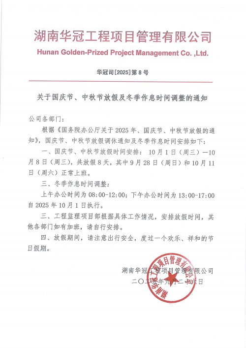 2025年國慶節(jié)、中秋節(jié)放假及冬季作息時間調(diào)整的通知